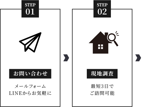 急なトラブルや悪天候による被害など、すぐに対応が必要な場面でもお任せください。お問い合わせから、最短3日で現地調査に伺います。