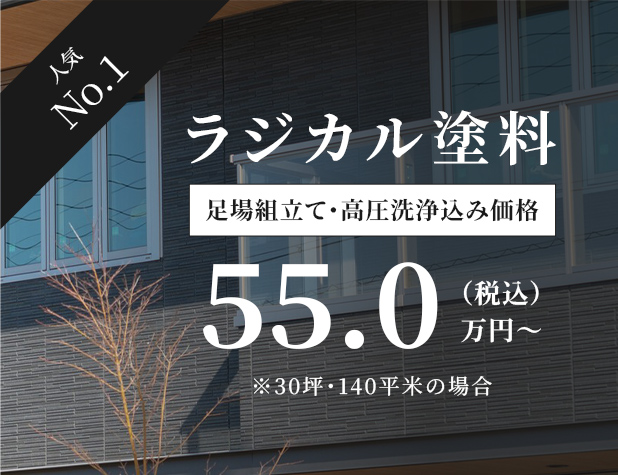 ラジカル塗料は、紫外線などによる劣化の原因「ラジカル分子」の発生を抑える、耐久性の高い塗料です。塗膜が色あせやひび割れを起こしにくく、美しさが長持ちします。